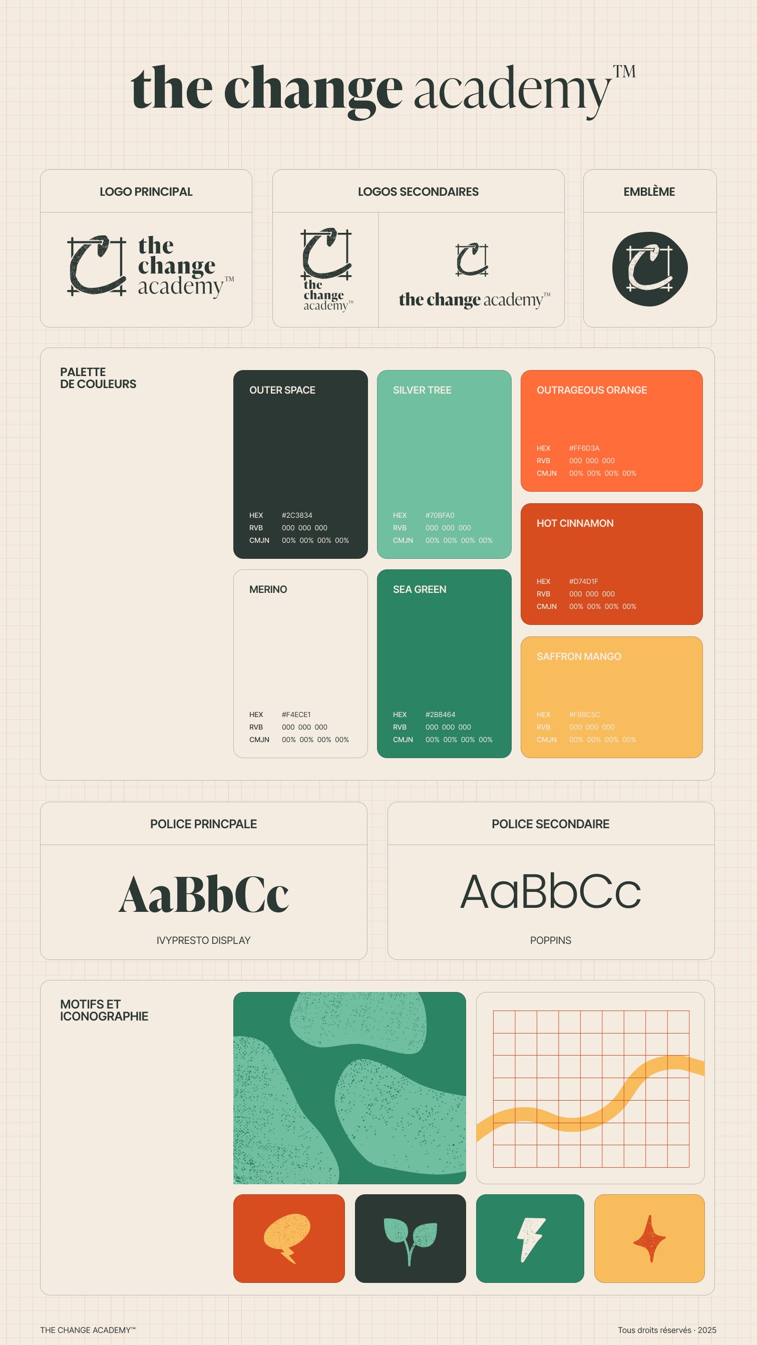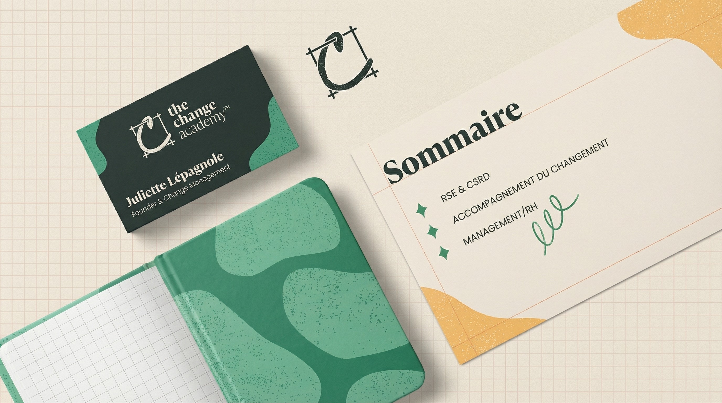 Développement d'une identité visuelle élégante et contemporaine pour The Change Academy, cabinet de coaching spécialisé en transformation professionnelle