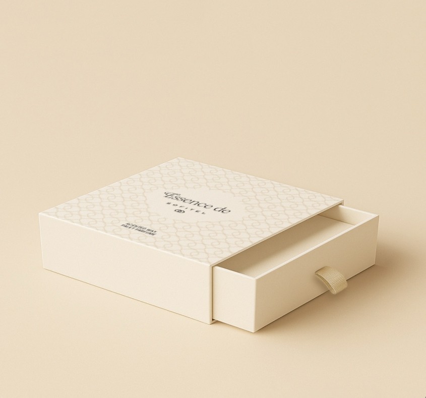 Nous avons développé une gamme complète, du concept produit au packaging final. Recherche de formes épurées, travail sur les matières et les finitions, attention portée à chaque détail tactile. Le packaging joue sur la sobriété élégante, laissant parler la qualité des matériaux. Chaque élément – du choix typographique à la composition visuelle – a été pensé pour évoquer la mémoire sensorielle d'un séjour d'exception tout en s'intégrant naturellement dans un intérieur contemporain.