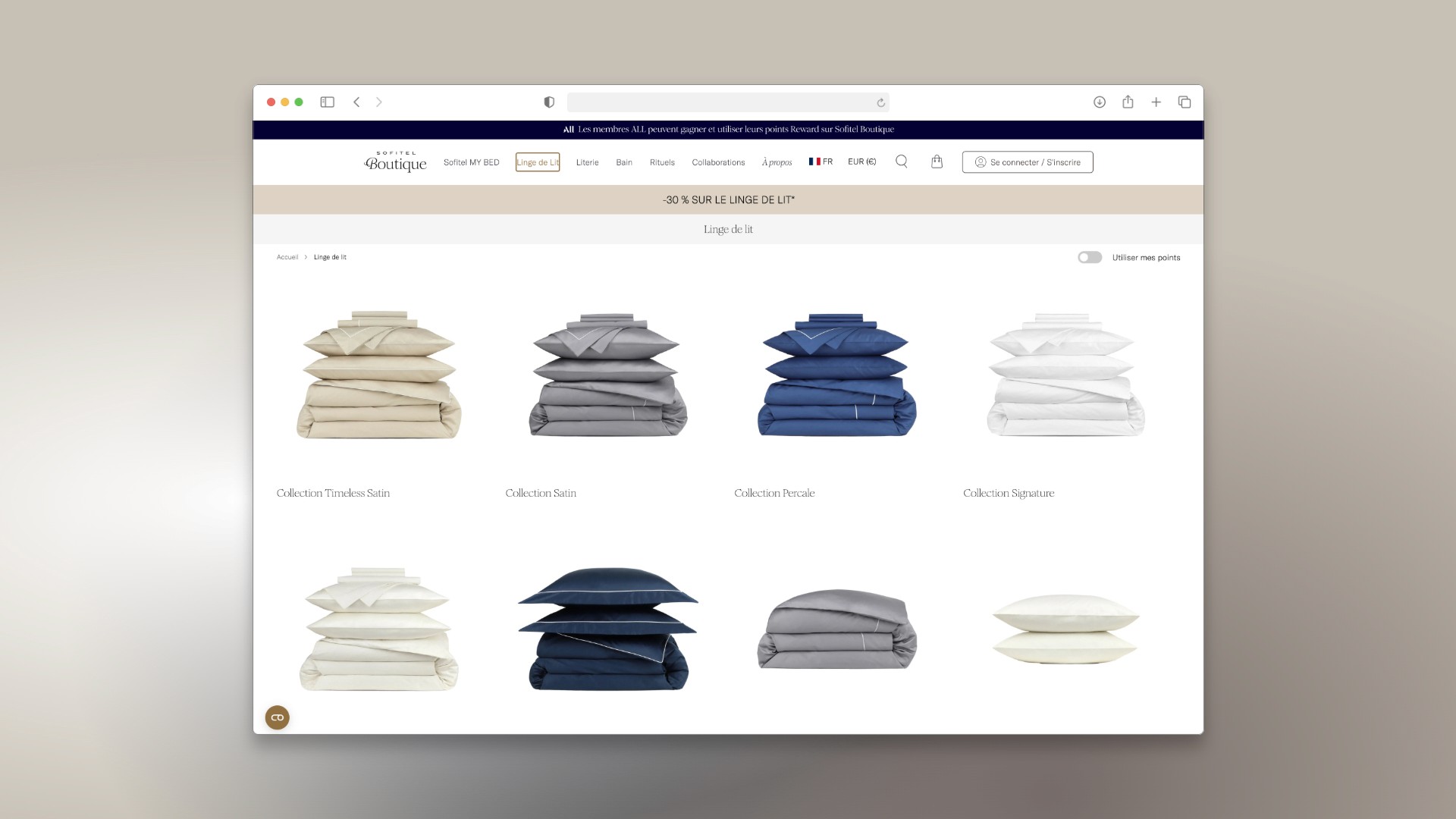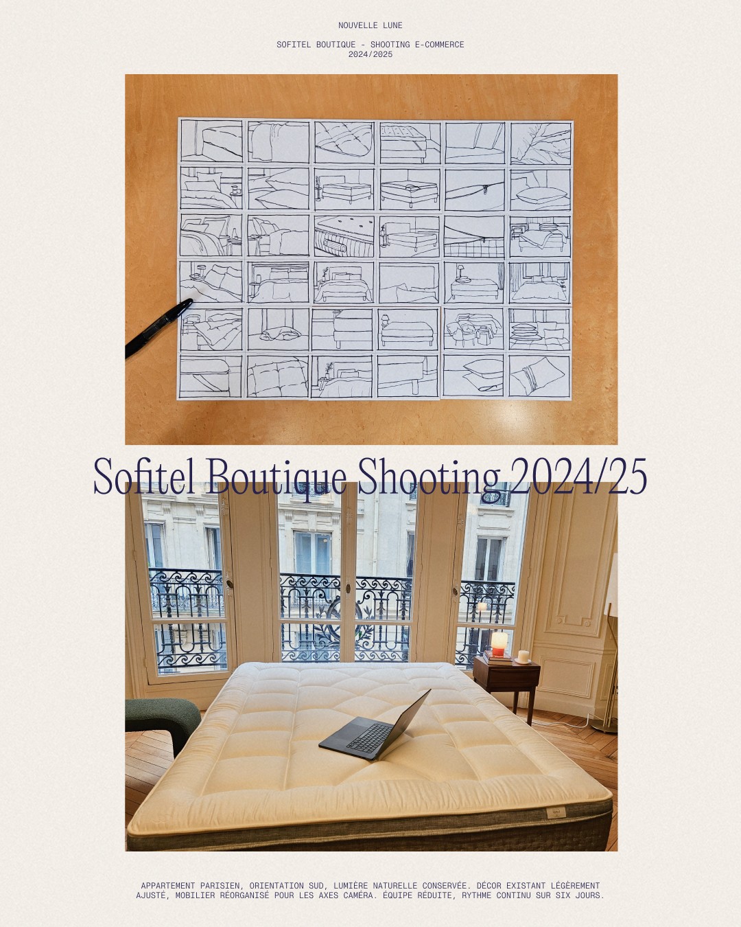 Direction artistique et production d'un shooting photo pour la boutique Sofitel, capturant l'art de vivre à la française et le raffinement des collections