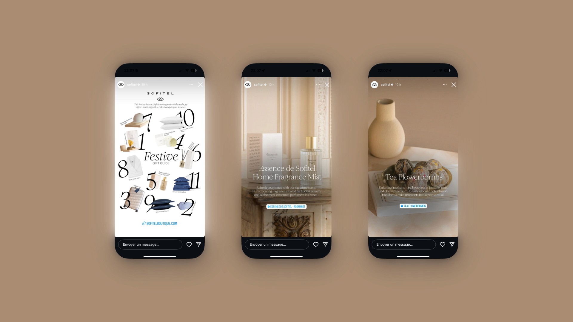 Nous avons orchestré la direction artistique et la production d'un shooting photo mettant en scène les collections de la boutique. Jeux de lumière naturelle, compositions épurées, attention portée aux matières et aux détails : chaque image célèbre les objets tout en racontant une atmosphère. Le résultat : une banque visuelle cohérente qui sert aussi bien les supports print que digitaux, capturant l'esprit Sofitel avec authenticité et désirabilité.
